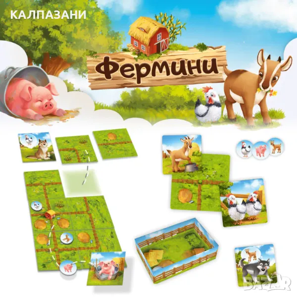 Всеки играч избира карта с ферма и я слага пред себе си. Разположи четирите стартови карти (тези с различен гръб) в средата на масата, с лицето нагоре. Разбъркай картите с ограждения и останалите карти с ферми, за да съставиш купчинка с лицето надолу, и я постави близо до четирите стартови карти. Постави чиповете с животни в стопанския двор.
