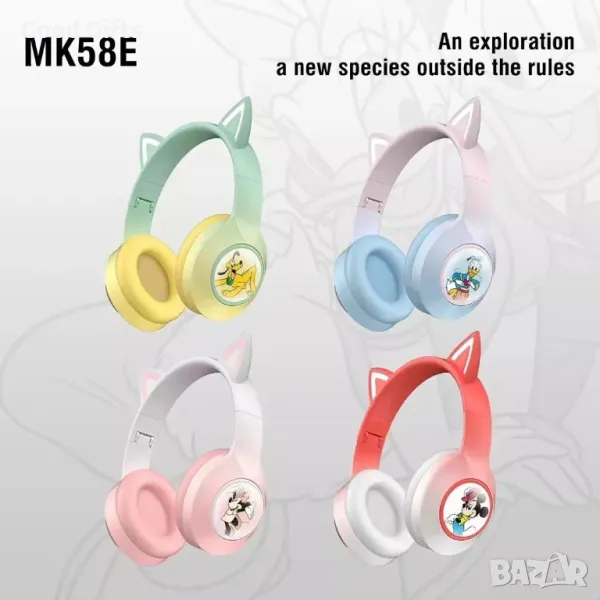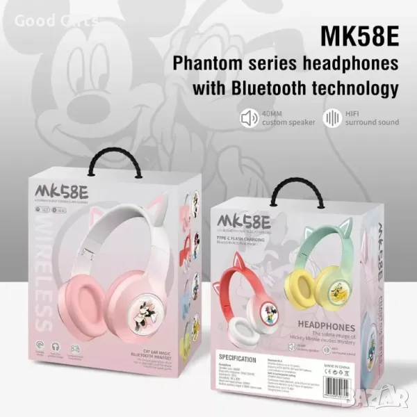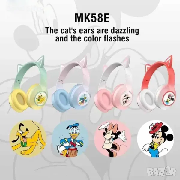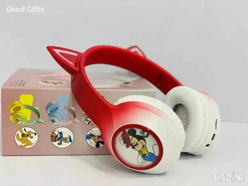 Безжични Bluetooth Слушалки Мики Маус и Мини Маус, с LED Светещи ушички