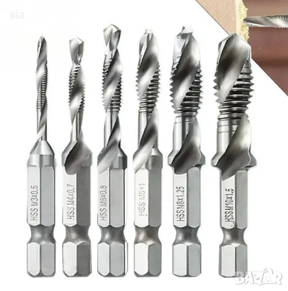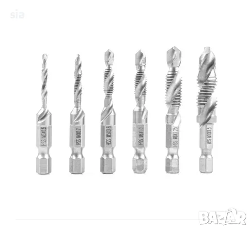 Комплектът съдържа:M3 x 0,5 мм - 64 ммM4 x 0,7 мм - 64 ммM5 x 0,8 мм - 67 ммM6 x 1,0 мм - 67 ммM8 x 1,25 мм - 70 ммM10 x 1,5 мм - 70 ммВИСОКОКАЧЕСТВЕНИ СРЕДКИСвредлата за метчик са изработени от устойчива и издръжлива HSS стомана. Благодарение на това решение можем да пробиваме в материали като: меки метали, алуминиева ламарина, пластмаса, мед, стомана, дърво и др.