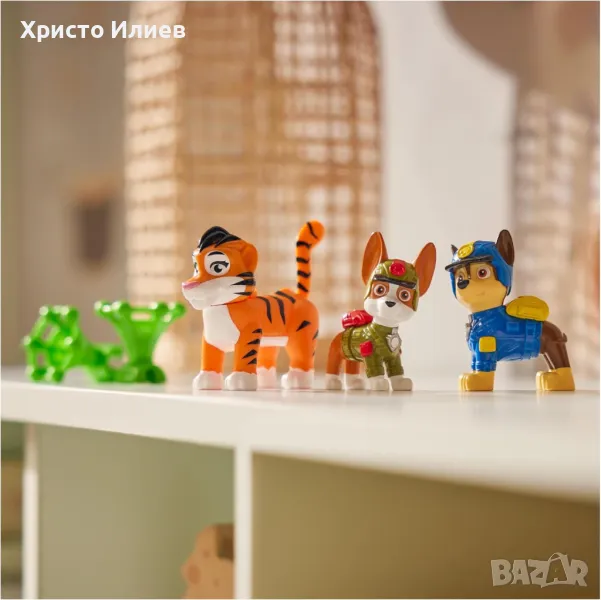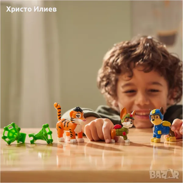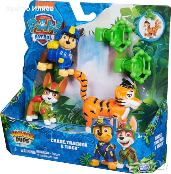 Създайте свои собствени приключения на PAW Patrol: Jungle Patrol с Chase, Tracker и техния приятел тигър или Marshall, Skye и техния приятел слон. Високи са над 5 см и изглеждат точно като в сериала. Когато дойде време за вълнуващо спасяване, прикрепете мрежестия снаряд към опашката на тигъра, издърпайте опашката докрай, след което натиснете бутона, за да стреляте и да спасите положението. Използвайте въображението си, за да пресъздадете любимите си епизоди от PAW Patrol: Jungle Patrol или създайте изцяло нови мисии. За да изиграете още по-забавни и вълнуващи мисии, вдъхновени от поредицата PAW Patrol, съберете всички играчки PAW Patrol: Jungle Patrol от поредицата PAW Patrol. Комплектът фигурки Paw Patrol Jungle Pups насърчава децата да създават свои собствени истории за смели кучета. Кученцата срещат слон или тигър по време на пътуването си в джунглата! Какви приключения ги очакват?