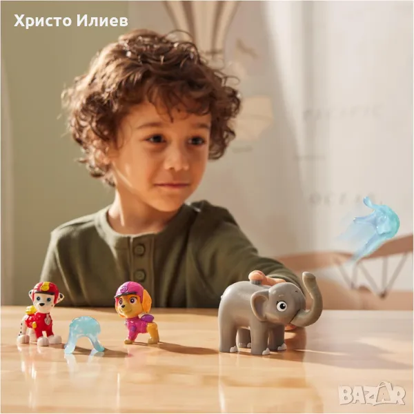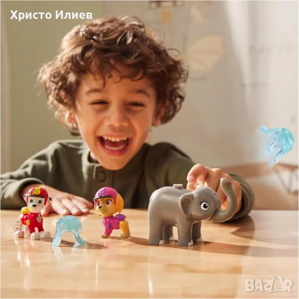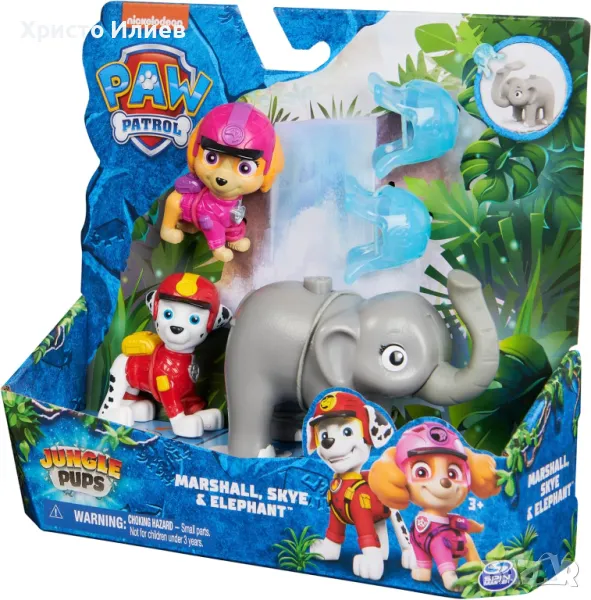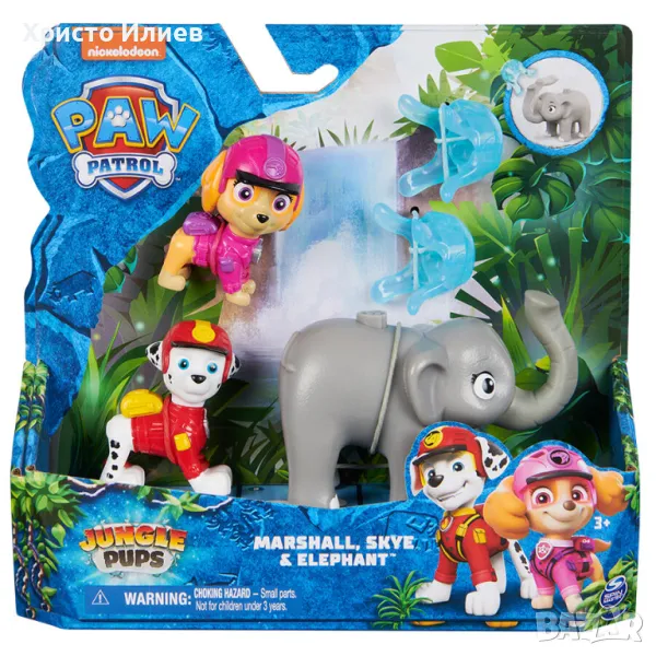Създайте свои собствени приключения на PAW Patrol: Jungle Patrol с Chase, Tracker и техния приятел тигър или Marshall, Skye и техния приятел слон. Високи са над 5 см и изглеждат точно като в сериала. Когато дойде време за вълнуващо спасяване, прикрепете мрежестия снаряд към опашката на тигъра, издърпайте опашката докрай, след което натиснете бутона, за да стреляте и да спасите положението. Използвайте въображението си, за да пресъздадете любимите си епизоди от PAW Patrol: Jungle Patrol или създайте изцяло нови мисии. За да изиграете още по-забавни и вълнуващи мисии, вдъхновени от поредицата PAW Patrol, съберете всички играчки PAW Patrol: Jungle Patrol от поредицата PAW Patrol. Комплектът фигурки Paw Patrol Jungle Pups насърчава децата да създават свои собствени истории за смели кучета. Кученцата срещат слон или тигър по време на пътуването си в джунглата! Какви приключения ги очакват?