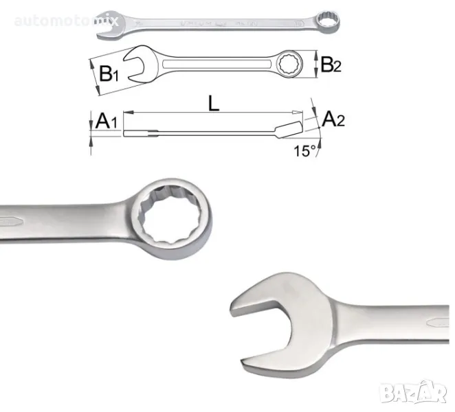 Комплектът включва ключове с размер: 6 - 27мм. (6 / 8 / 10 / 12 / 14 / 17 / 19 / 22 / 24 /27 mm)