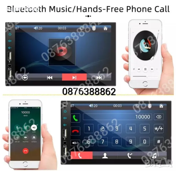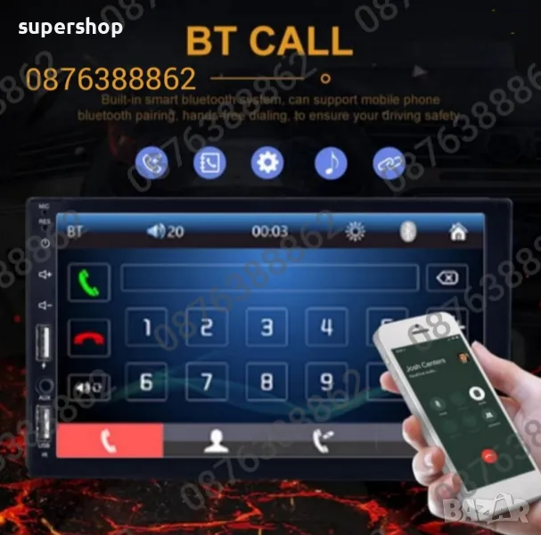 7-инчовият сензорен екран предлага страхотно визуално изживяване. Можете да се насладите на любимия си филм по всяко време и навсякъде. Bluetooth свързването ви позволява да използвате системата за разговори безжично, музикалният плейър може да се свърже, чрез Bluetooth към Вашият телефон, таблет, или други.