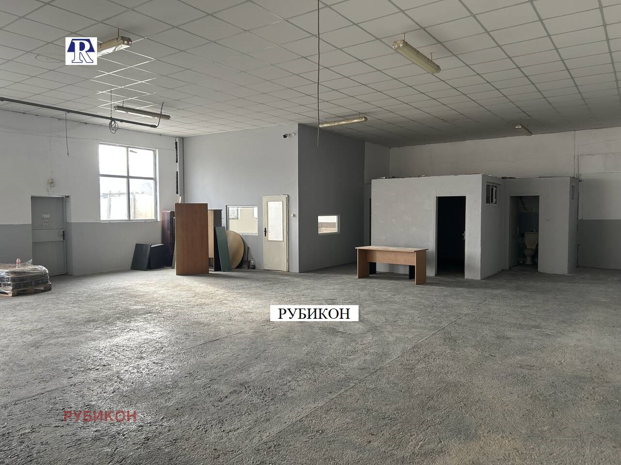Отлична локация и комуникации в непосредствена близост до основни пътни артерии! Производствено-складово хале, с монолитна конструкция. Отговаря на всички европейски изисквания: под шлайфан бетон, ролетнани врааи, естествено осветление и луминисцентни осветителни тела, системи за пожарна безопасност: пожарогасене и известяване, санитарни възли, височина 4м. Други опции: ТИР достъп, паркоместа за клиенти и персонал. Офис с баня и тоалетна. Фирма Рубикон разполага с над 500 оферти за отдаване под наем на складове и промишлени помещения с различни площи и локация в Пловдив и област Пловдив! Massive, guarded warehouse(storehouse) with office space. Access is via boulevard with outdoor parking and landscaped areas. There are convenient track approach, operating systems for security, fire. The warehouse has a large area of 280 m2. The height is 4 m. Office area and sanitary unit. The status is of a storage for industrial goods. Floor - polished concrete. The warehouse is located in the north industrial zone of Plovdiv. The location is very convenient, with easy access. Rental price - 6lv/sq.m. Rubikon real estate suggest more than 500 offers of storehouse(warehouse) for rent in Plovdiv region!