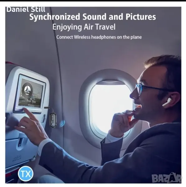 Това е адаптер за безжично аудио предаване, който работи на 5.4G, проектиран за използване в самолет, телевизори, компютри, фитнес залата и автомобили. Поддържа съединяване с две безжични устройства, има USB зареждане, максимално напрежение от 36V и е оборудван с 320mah акумулаторна полимерна литийева батерия, позволяваща безжична функционалност.