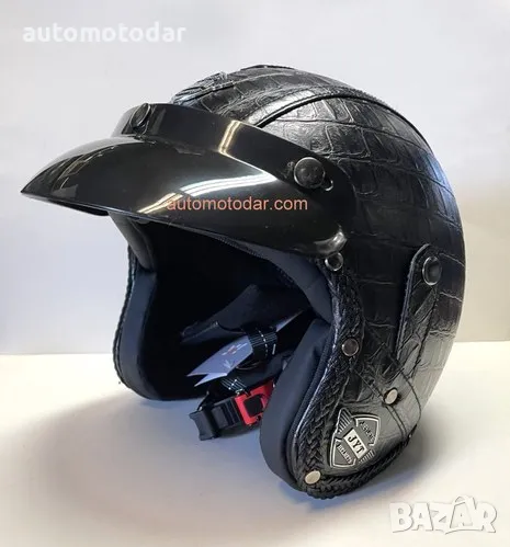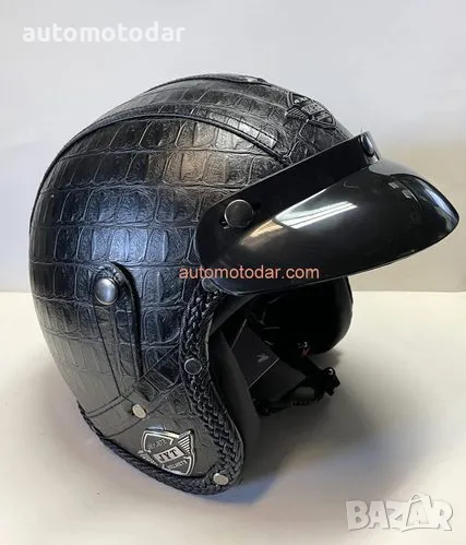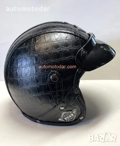 Отворена кожена каска за мотор скутер мотопед → Обява 48798008