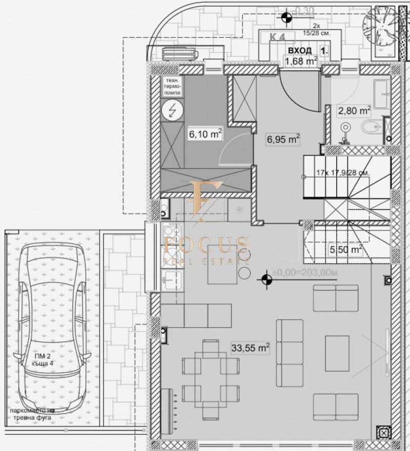 Къщата е с обща квадратура 147,40 кв.м. като има следното разпределение: