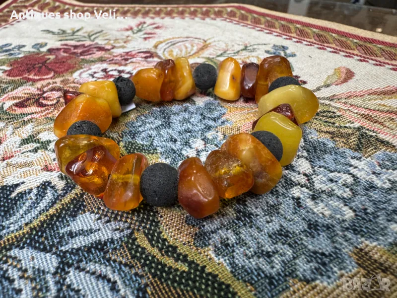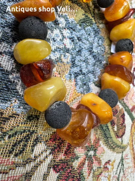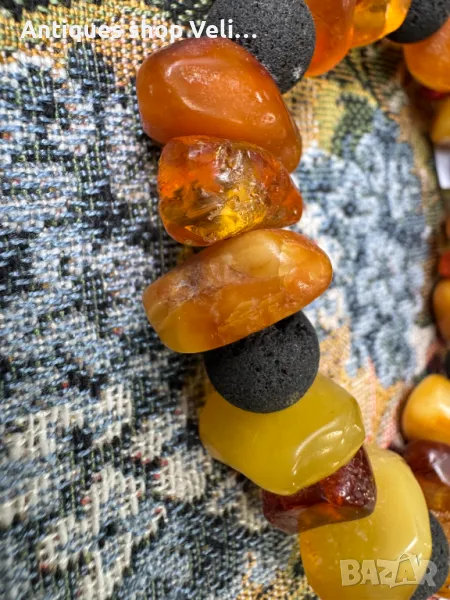 Стара гривна/наниз от късиве натурален балтийски кехлибар. Добро състояние. Нанизана на еластична връв. Предлагаме доставка с Еконт и лично предаване за градовете Велико Търново, Русе и Сливен.