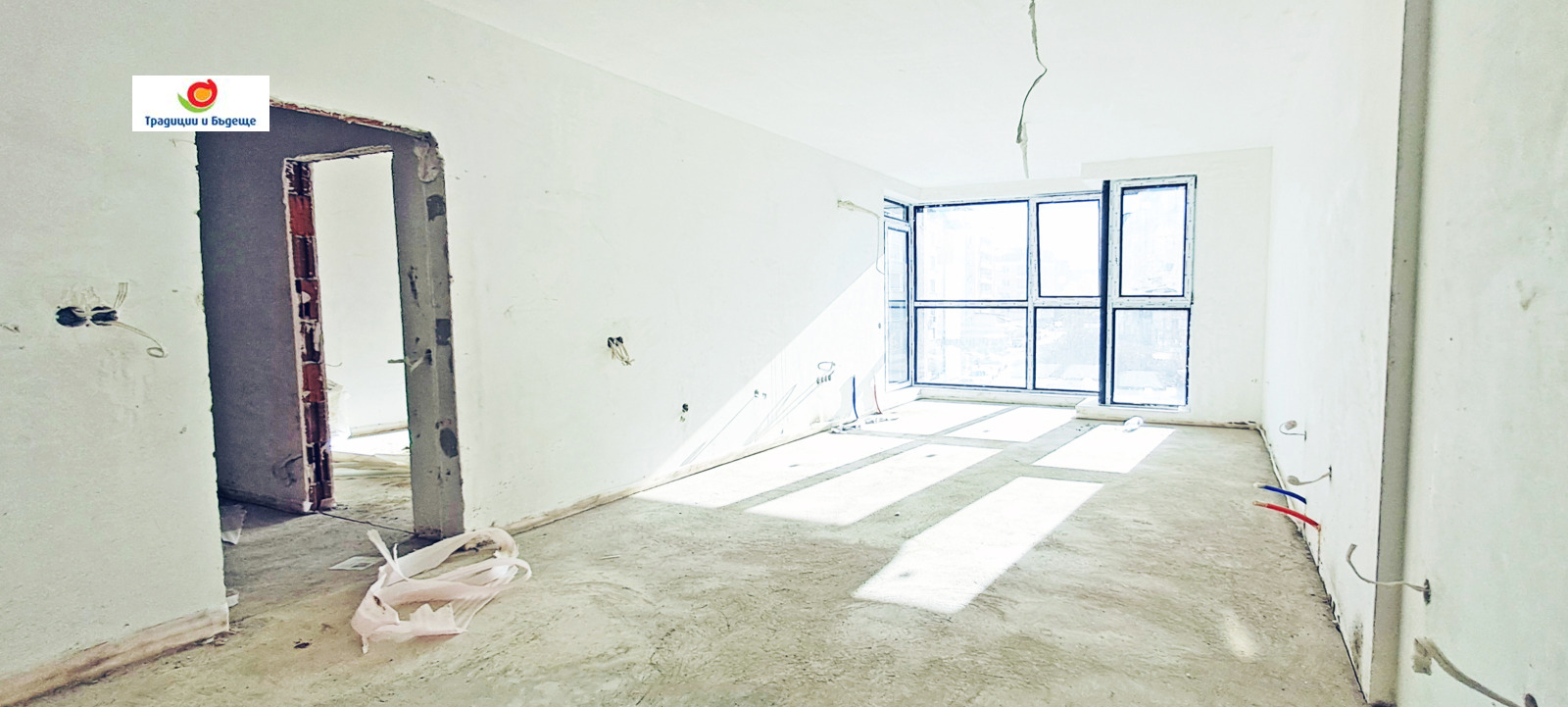 Предава се на шпакловка и замазка, с блиндирана входна врата, PVC дограма, ВиК на тапи, ел инсталация с ключове и контакти и монтирано апартаментно табло, инсталация за интернет и TV, изградена звънчева и домофона инсталация с монтиран домофон и тераси с гранитогрес.