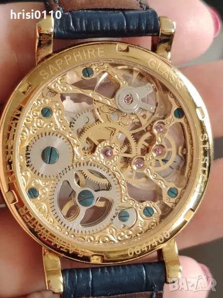 Мъжки часовник Poljot PETER THE GREAT HAND WINDING - 9211.1941615Стил: Ежедневно-елегантенТип механизъм: Мануален/Ръчно навиване,калибър 9011 PL,18 камъка,енергиен резерв 38 часа Материал корпус: Благородна стомана с 18К розово-златно PVD покритие,скелетон гръбТип стъкло: Сапфир-кристалЦифреблат: Скелетон с сини стрелки и розово-златни индексиКалендар: НеРазмери на корпуса: Диаметър 43 мм, дебелина 12.40ммКаишка/верижка: Кафява кожена каишка от естествена кожаВодоустойчивост: 5 Bar /пръски вода, къпане/Код9211.1941615МаркаPoljotСерияне е наличноМеханизъмМеханиченЦвятЗлатистКорпус40-43ммЦиферблатАналоговСтъклоСапфир-кристалКаишкаКоженаВодоустойчивостПръски водаЛимитирана серия 400 броя