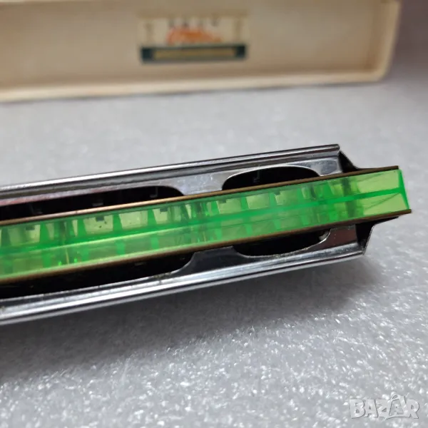 Тази хармоника е направена от неустановен производител в Шанхай, Китай, неустановена дата. Това е модел Tower в ключа на C, с 24 двойни дупки и 48 тона. Тази хармоника има неоново зелен пластмасов гребен с метални капаци, прикрепени отгоре и отдолу с винтове и гайки. Допълнен с оригинална картонена кутия. Хармониката е гравирана.