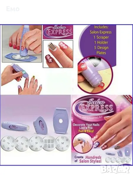 С Salon Express Nail Art Stamping Kit може да се създават сложни и артистични дизайни бързо и лесно, като се добавят цветови акценти и персонализирани мотиви към маникюра.