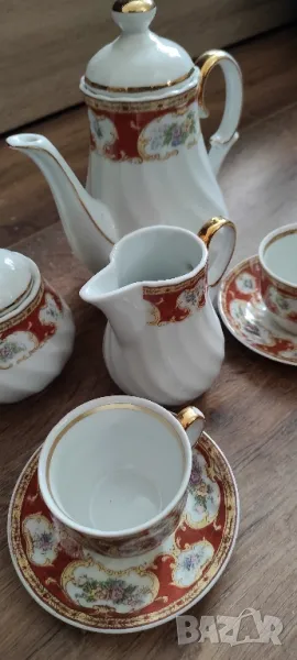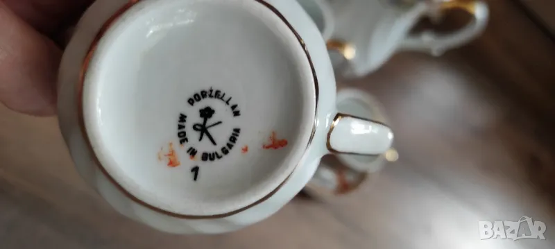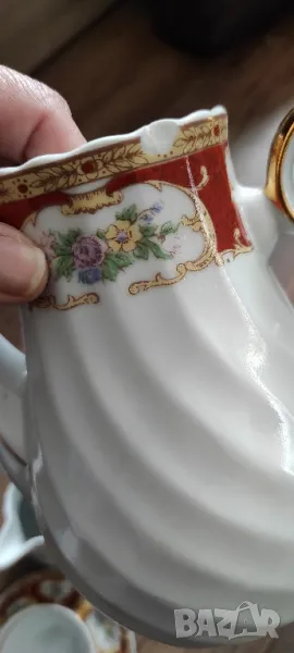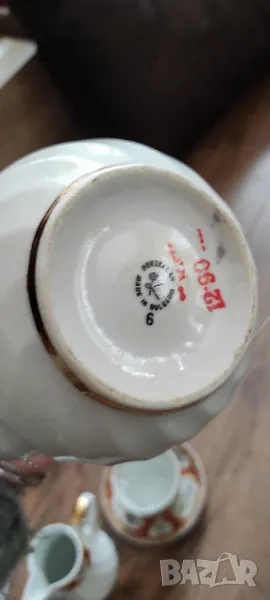 Части от порцеланов сервиз на Китка за допълване .Видно от мокрите печати,всичко е чисто ново ,но за съжаление чайника и захарницата имат чипчета (на снимките).Чашките са малки,за късо кафе.