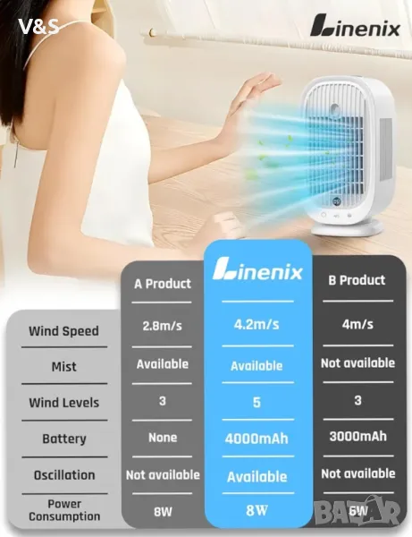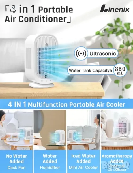 Преносим климатик, мини климатик, 4-в-1 изпарителен въздушен охладител, преносим на батерия!!!