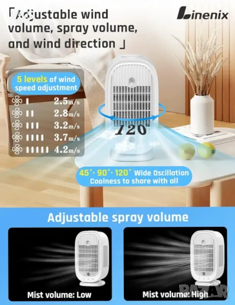 мобилен климатик използва ултразвукова технология за мъгла, за да пулверизира водните молекули във водния резервоар във фина мъгла, която след това се разпръсква от вентилатора, осигурявайки свеж и влажен въздух. Кажете сбогом на сухата кожа, запушения нос и кашлицата, причинени от сухия летен въздух. Можете да избирате от различни режими на мъгла, за да увеличите влажността, ефективно облекчавайки дискомфорта, причинен от лятната сухота.