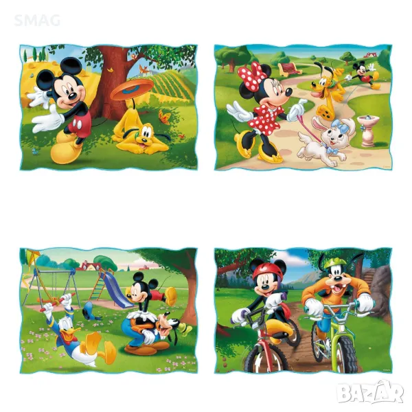 Детски пъзел с 4 изображения от фирмата на Mickey & Minnie. Съдържа 4 пъзела с 35, 48, 54 и 70 части.