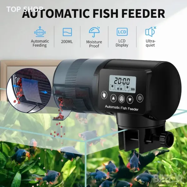 Автоматична хранилка за риби за аквариум: Автоматичен диспенсер за храна на малки люспи и пелети Програмируем диспенсер за храна с време за костенурка/златна рибка/Бета/кои, таймер за самозахранване в резервоара за открито/ваканция
