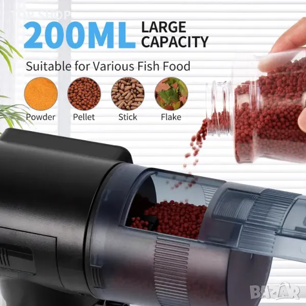 Разширени настройки на таймера: Освен това можете ръчно да управлявате тази автоматична хранилка за храна за риба и да се наслаждавате на забавлението от храненето на риба в свободното си време; вграденият таймер ви позволява да планирате 4 сесии на хранене през целия ден, гарантирайки, че вашите риби получават постоянна храна, дори когато не сте наоколо.
