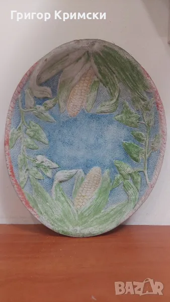 Релефна керамична чиния много стара 100лв.Височина-33см. Широчина-27см.
