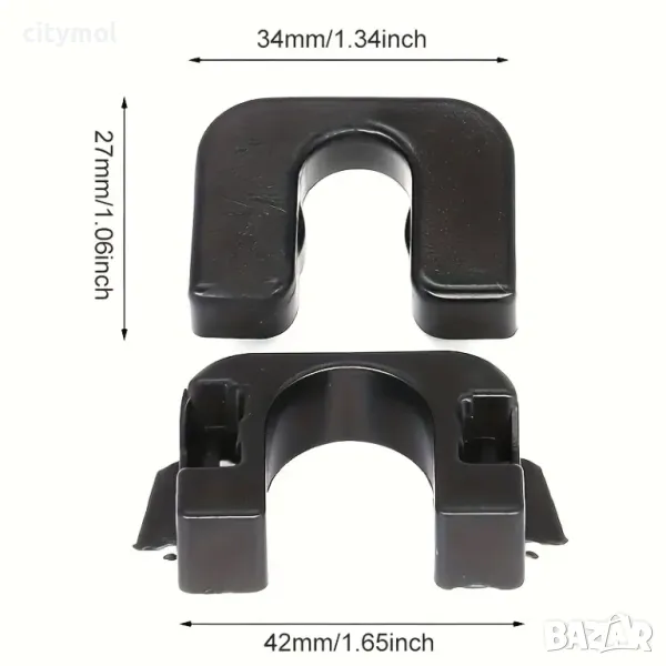 - Лесен монтаж: Щипките се състоят от две половини, които просто се плъзгат върху рамката на автомобила, за да осигурят сигурно закрепване.
