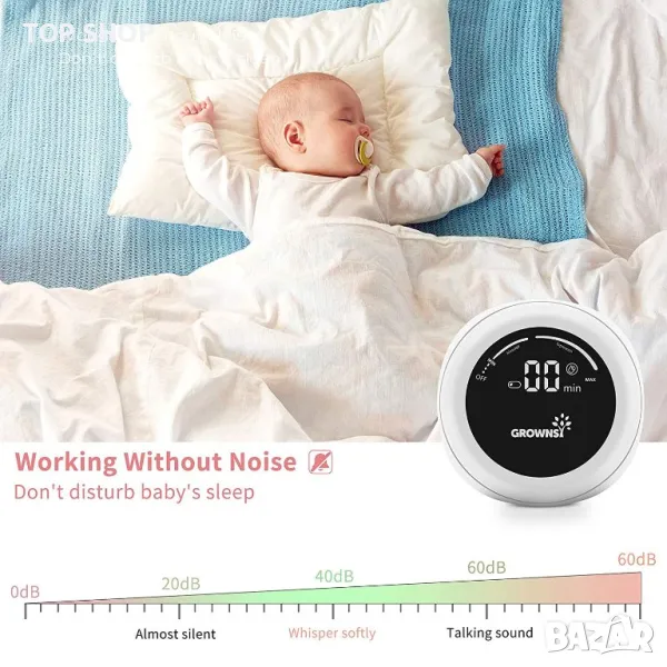 Изключително тих LED дисплей: LED дисплеят ясно показва мощността на продукта, времето за засмукване, режима и интензитета. Изключително тихият дизайн няма да безпокои никого около вас при изцеждане на кърма