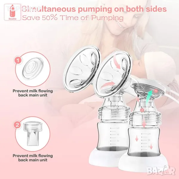 Дизайн против обратен поток и хранителен PP: Научен дизайн против обратен поток, избягвайте вторично замърсяване, причинено от обратен поток на мляко, повреда на двигателя или тръбата. Всички части на помпата за кърма са изработени от материал за хранителни цели (без BPA) без никакви вредни вещества.