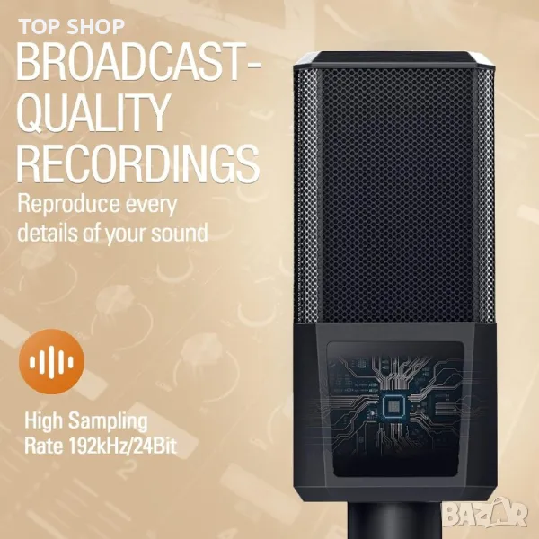 Отлично качество на звука: USB микрофон с професионален аудио чипсет 192 kHz/24 бита. 30 Hz - 16 kHz: разширената честотна характеристика е отлична за вокали, реч и глас зад кадър, перфектна за възпроизвеждан звук.