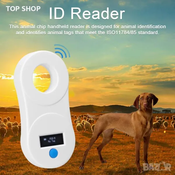 Този ръчен компютър с чип за животни е предназначен за идентификация на животни и идентифицира животински етикети, които отговарят на стандарта ISO11784/85.