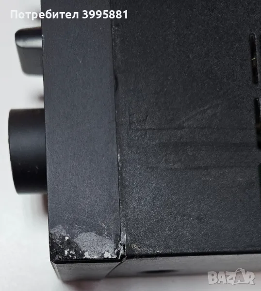 Има една забележка в горната дясна част на панела и леки охлузвания по челната повърхност на потенциометъра за усилване, показани са на снимките.