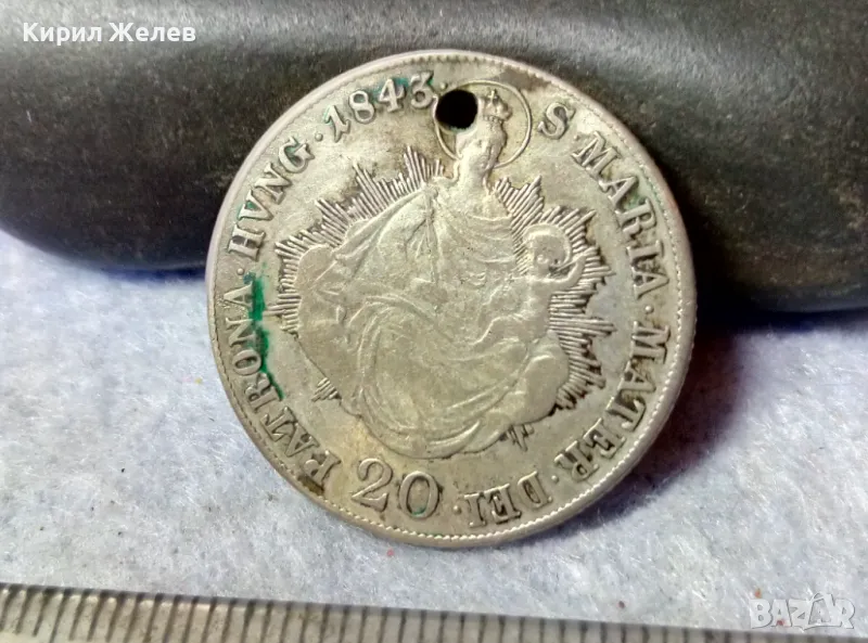 Стара СРЕБЪРНА МОНЕТА 20 КРОЙЦЕРА 1843 ИМПЕРАТОР ФЕРДИНАНД I УНГАРИЯ СВЕЩЕНА РИМСКА ИМПЕРИЯ 26351