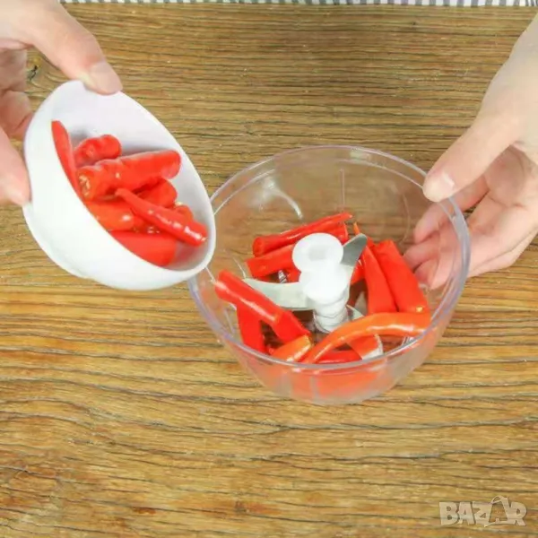 Подходящ за лесно и бързо нарязване на различни съставки, като зеленчуци, плодове и билки, без нужда от електрически уреди.