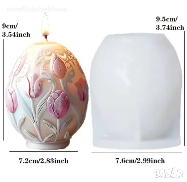 3D Голямо великденско яйце с лалета Силиконов молд форма за свещи гипс сапун → Обява 48806187
