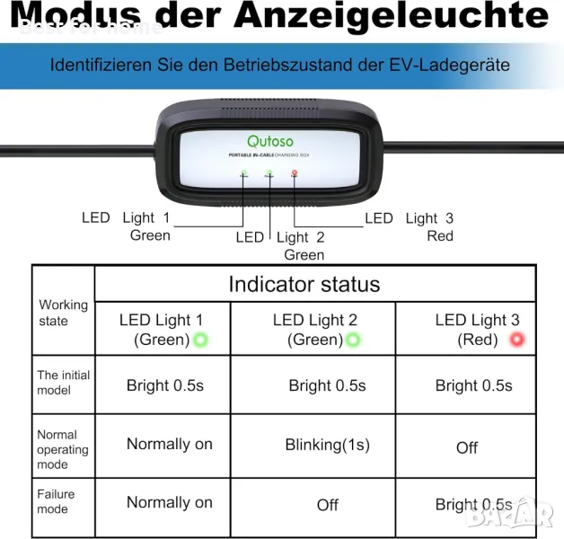 ③LED светлинните индикатори ясно показват състоянието на зареждане. И ви предупреждава с червена светлина, ако възникне грешка.