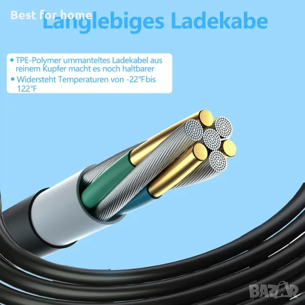 Издръжлив кабел за зареждане: кабелът е изработен от висококачествена чиста медна жица със стабилно натоварване, а изолационният слой е изработен от висококачествен TPE материал. Кабелът за зареждане е с дължина до 7 метра, което е достатъчно, за да задоволи ежедневните ви нужди.