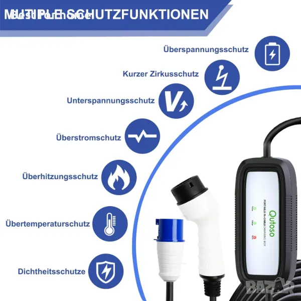 Qutoso EV станция за зареждане на електромобили , 32A тип 2, 7KW