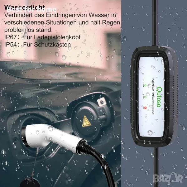 Водоустойчиви и лесни за използване детайли. Защитната кутия е IP54, а главата на пистолета за зареждане е IP67. Отгоре има гумено покритие, което предпазва от вода и прах.