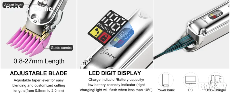 Бербер професионална машинка за подстригване и стилизиране Hatteker696