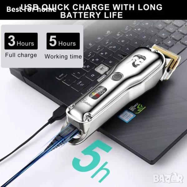 Мощна батерия: Професионалната машинка за подстригване работи без кабел до 300 минути след пълно зареждане от 3 часа. Професионалната машинка за подстригване е подходяща за домашно или бръснарско подстригване