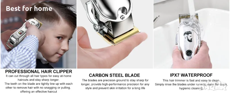Той е страхотен за прически за лице: машинка за подстригване, тример за брада, подстригване и подстригване на коса, мустаци, бакенбарди, кози брадички, наболи косми, други косми по лицето и тялото. Също така е много подходящ за подстригване на деца или малки деца, благодарение на ниското ниво на шум и безопасните остриета
