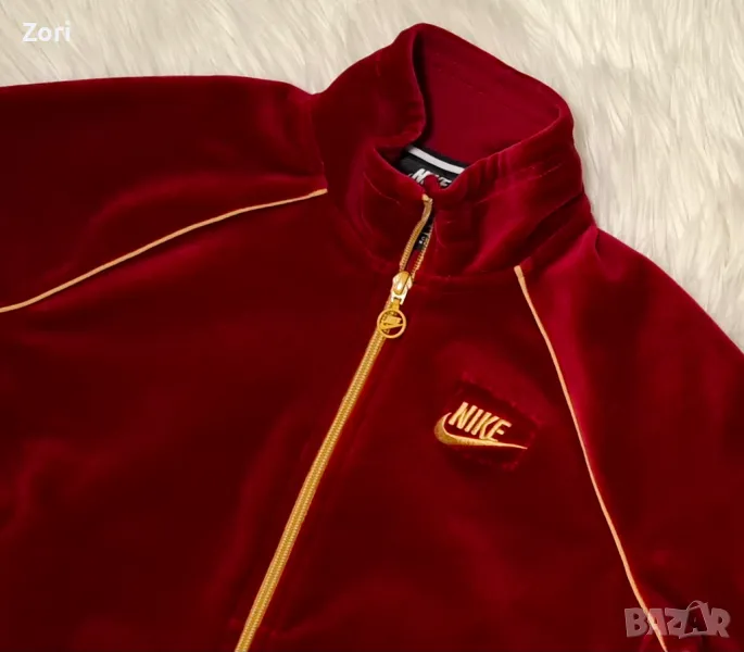 Моделът е от кадифе в цвят Бордо, аранжиран с жълто лого и кантове. Има два странични вътрешни джоба.