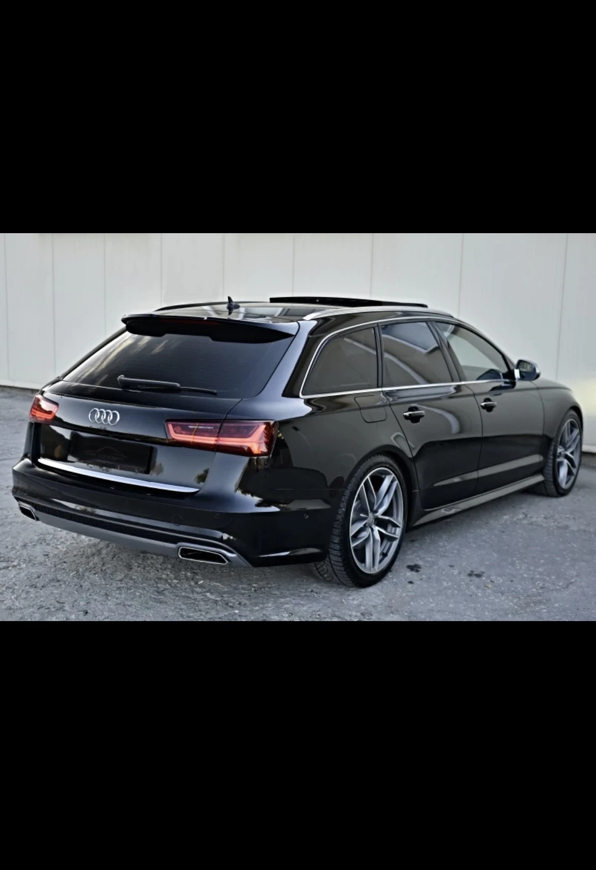 Audi A6 S-Line 3. 0TDI 272к. с. 2015 Автомобила е в перфектно техническо и визуално състояние безкомпромисно подържан. Напълно реални км! ! ! ! ! 190 ХХХ км Автомобила е на пружини със S line окачване, разполага с асистент за самопаркиране, Панорамен покрив , Дистроник, Matrix фарове. Асистент за мъртва зона. Асистент за следене на пътната маркировка. Озвучителна система - Bose. Автоматично затваряне на багажник Асистент за автоматични дълги светлини. Отопление на предни и задни седалки, 4-ри зонов климатроник. Active Sound. Обслужена и напълно готова за път! Нови летни гуми 265/40/20 Бартер за по-ефтин автомобил. Предложения може и на Viber : )