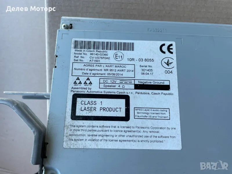 86140-02360 CV-VS75FOAE Навигация мултимедия от Toyota Auris 1. 6i, двигател 1ZR-FAE, ZRE18, 132 кс. , автоматик, 2018, 133 000 km. , euro 6B, Тойота Аурис, engine 1ZR-FAE на части в автоморга Delev Motors, между с. Каменар и с. Куманово гр. Варна.