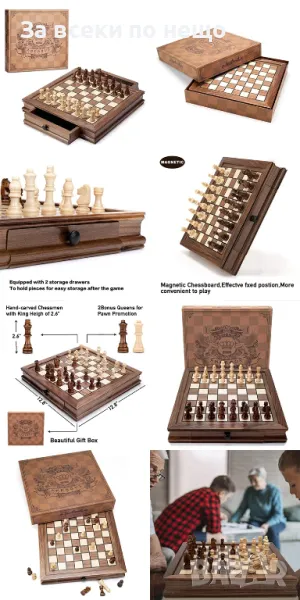 Магнитна дървена шахматна дъска с чекмеджета → Обява 48808461