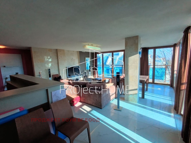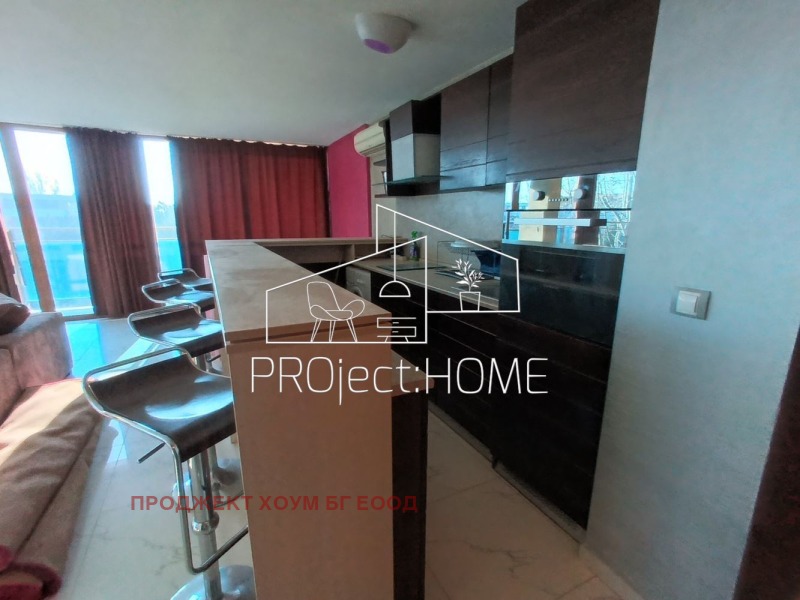 PRОject HOME/ Проджект хоум има удоволствието да Ви представи обзаведен, двустаен апартамент в целогодишно обитаем затворен комплекс. Жилището се намира на пети етаж в сграда с асансьор и е със следното разпределение: входно антре, просторна всекидневна с кухненска част и трапезария, спалня, баня с тоалетна и тераса. Продава се с наличното обзавеждане и оборудване - готов за живеене. Таксата поддръжка е 8 евро на кв.м. Подходящ е както за целогодишно живеене, така и с цел инвестиция за отдаване под наем. Сградата е на тихо и спокойно място, има акт 16, отделни партиди за ток и вода! Намира в близост до магазини, заведения и др. Плажа е на 600 метра!