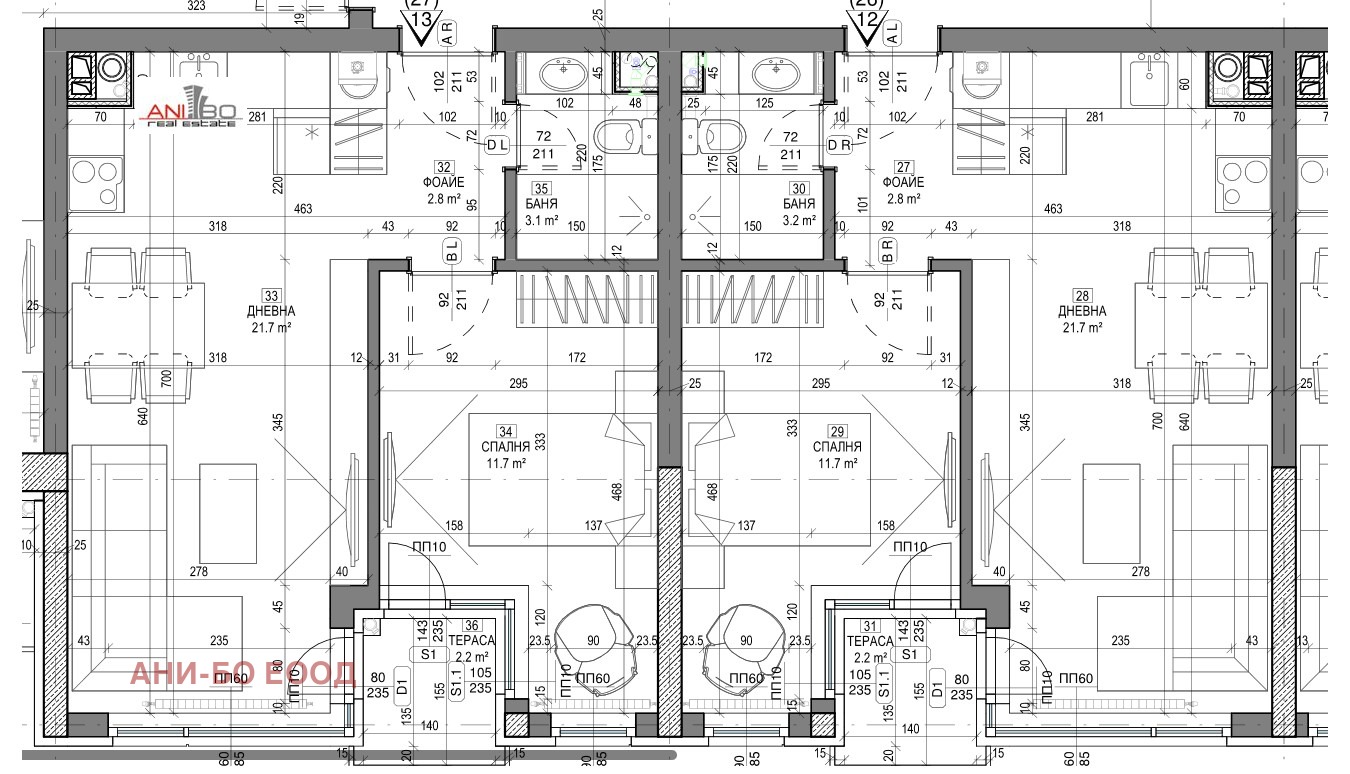 Агенцията предлага четиристаен на последен етаж, двустайни и тристайни апартаменти в същата сграда.