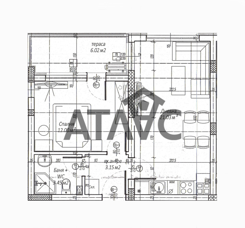 Жилището, което ви предлагаме е изключително функционално разпределено от хол с кухненски кът, спалня, входно антре, баня с тоалетна, склад и тераса.