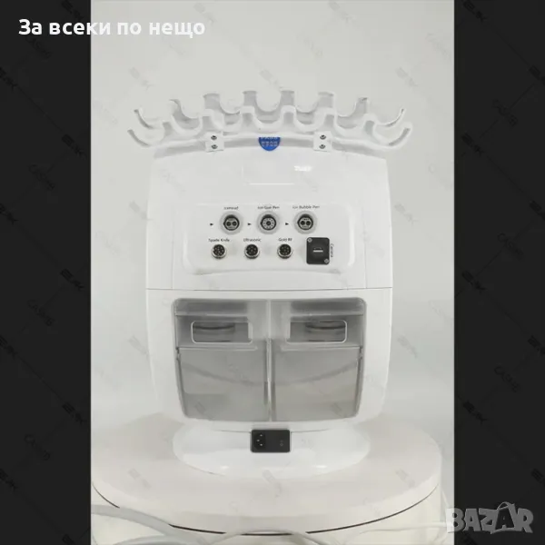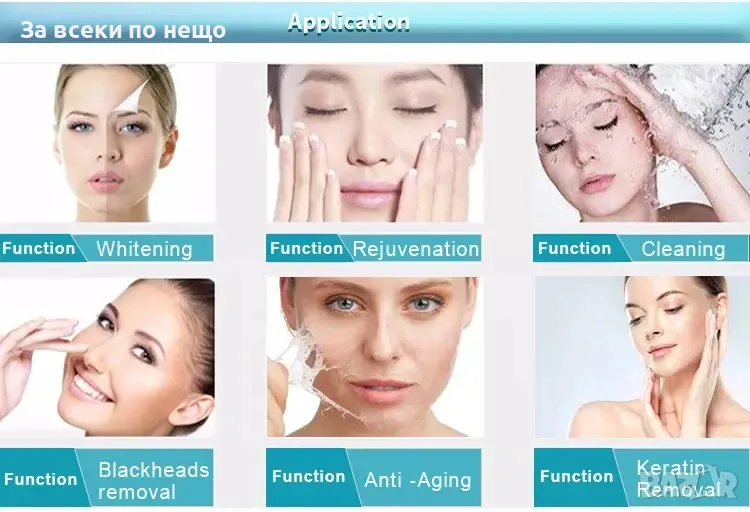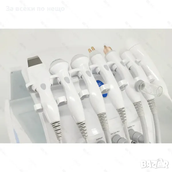 Комплексна грижа с 7 функции: Включва водно дермабразио, ултразвукова терапия, радиочестотна терапия, кислородна струя, студен чук, кавитационен пилинг и кислороден спрей.