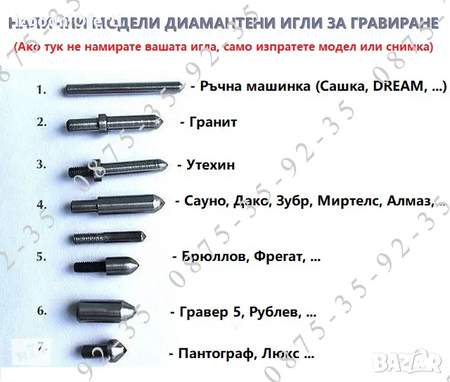 Продавам Висококачествени диамантени игли за ударно-гравировални машини. Иглите са произведени в Русия. Имам игли за всички типове гравирни машини върхи гранит ползвани в страната.
