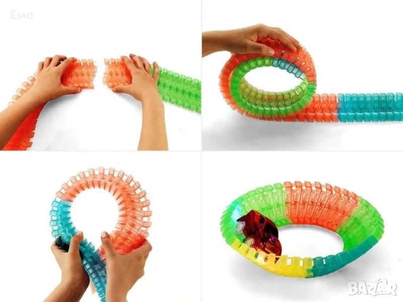 Детска светеща писта с 220 части, която позволява на децата да създават различни форми и трасета.