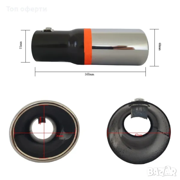 Универсален Накрайник за Ауспух 258 1бр. входа-47мм изхода-56мм